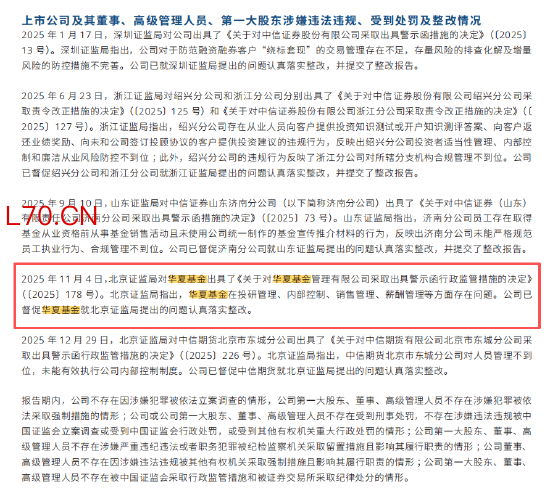 华夏基金2025营收96亿净利润24亿,管理规模3万亿,投研、内控、销售、薪酬存问题被北京证监局警示