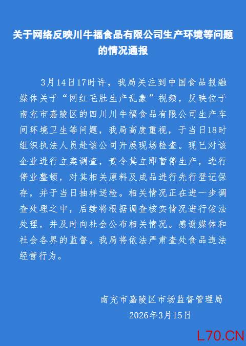 官方回应“网红毛肚生产乱象”:立案调查 涉事企业停业整顿