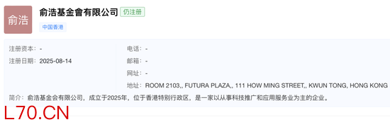 2025年6月1日,随着1亿元捐赠的宣布,“俞浩慈善基金会”“俞浩未来基金会”等名称开始密集出现在各类公益活动的宣传中。《中国慈善家》记者查证,前述基金会均未在民政部门登记注册。通过企业信息平台进一步检索发现,其对应的实际登记主体为俞浩基金会有限公司,注册于中国香港,成立时间为 2025年8月14日,企业类型归属科技推广和应用服务业。